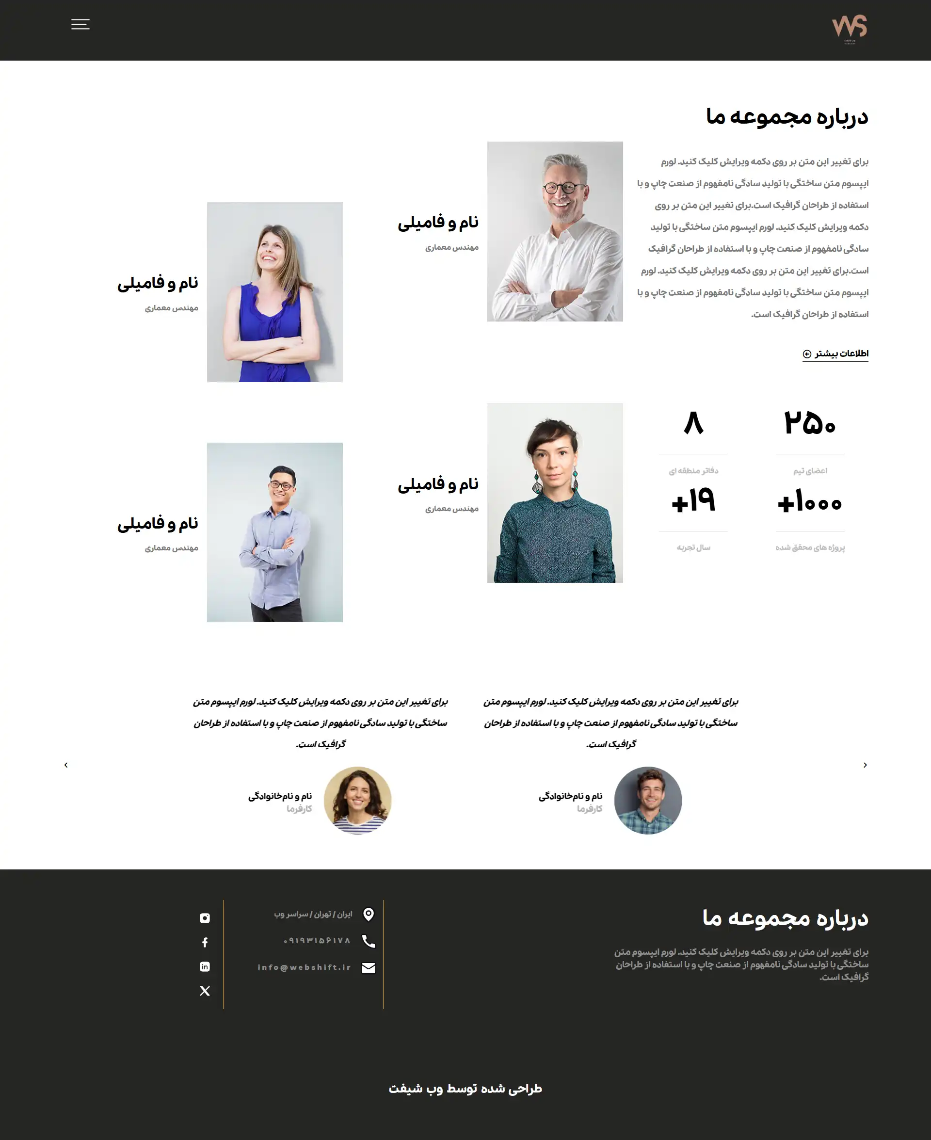 این وبسایت به صورت اختصاصی و بدون قالب آماده طراحی شده و به شما این امکان رو میده تمام بخش ها رو به سلیقه خودتون ویرایش کنید.