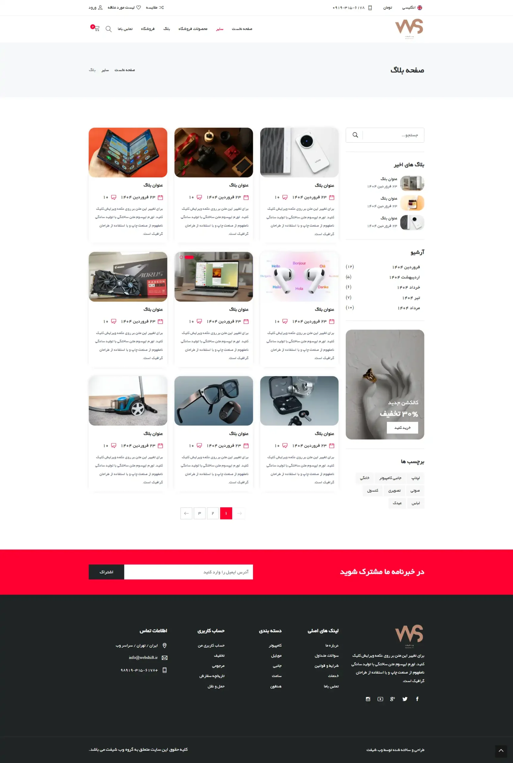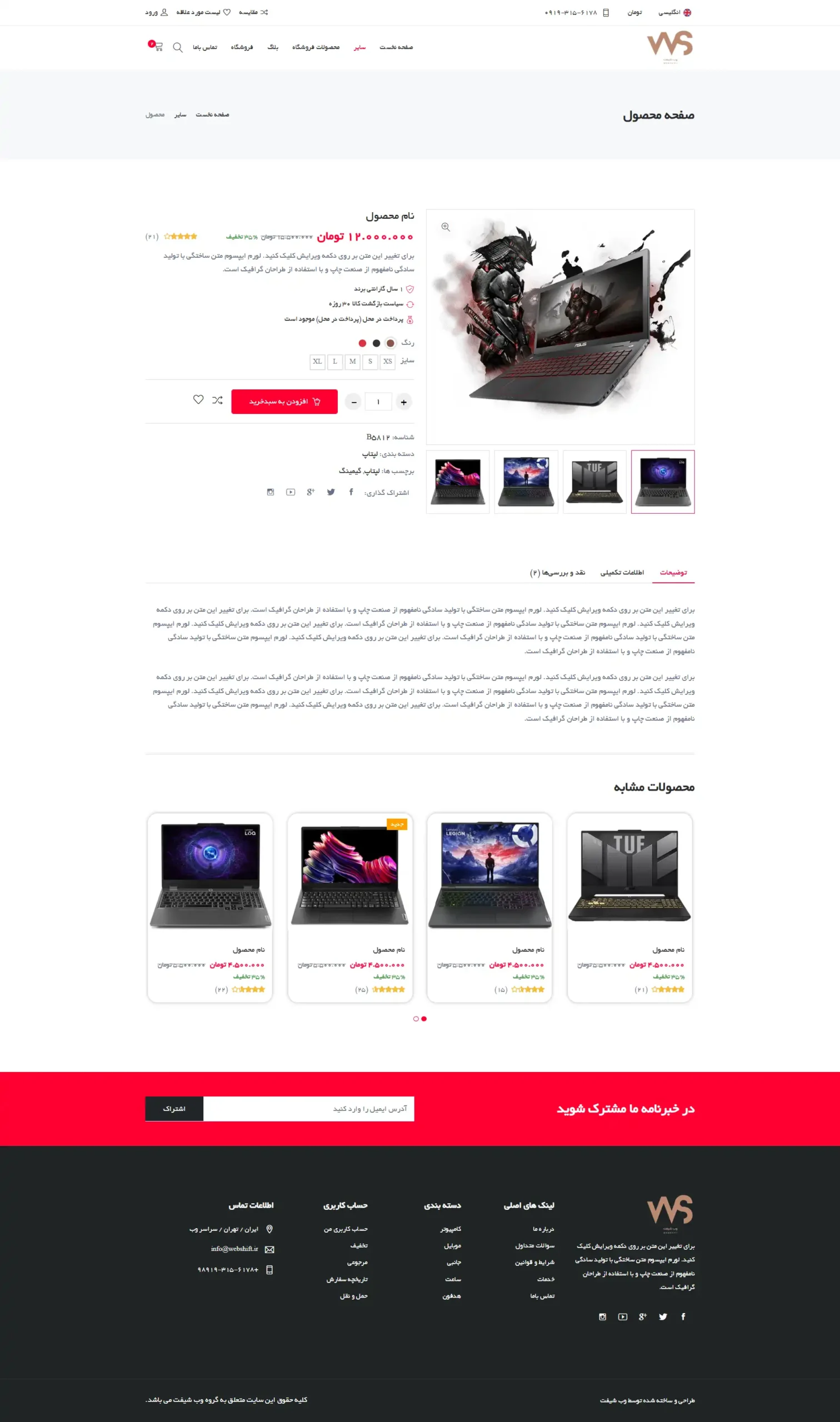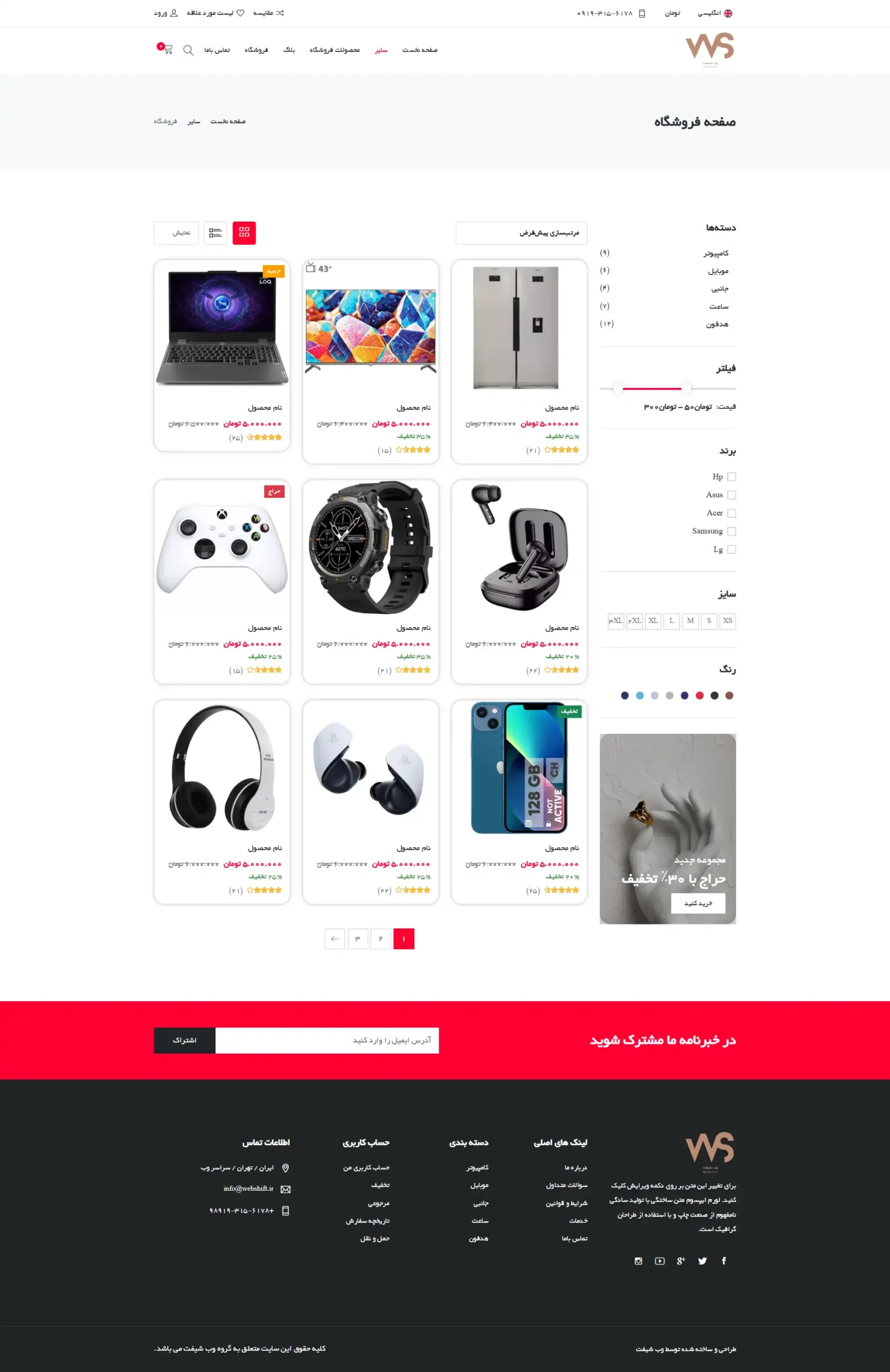 امکاناتی مثل منوی ساده و واکنشگرا، اسلایدر محصولات، تبها (tabs) در صفحه محصولات و طراحی جذاب رابط کاربری.
