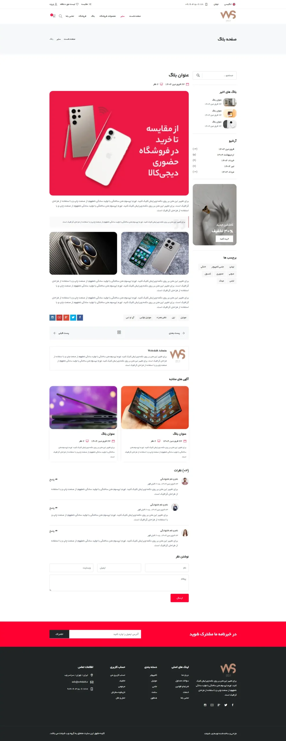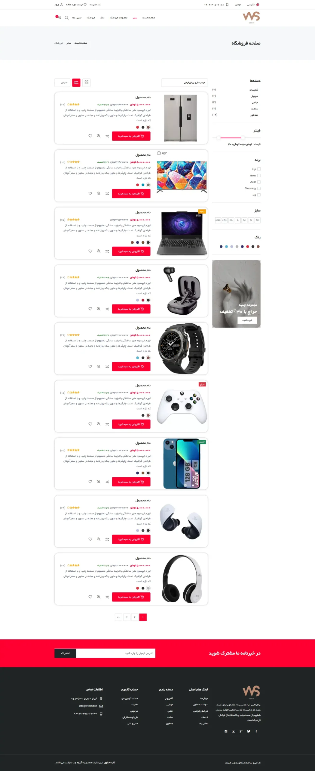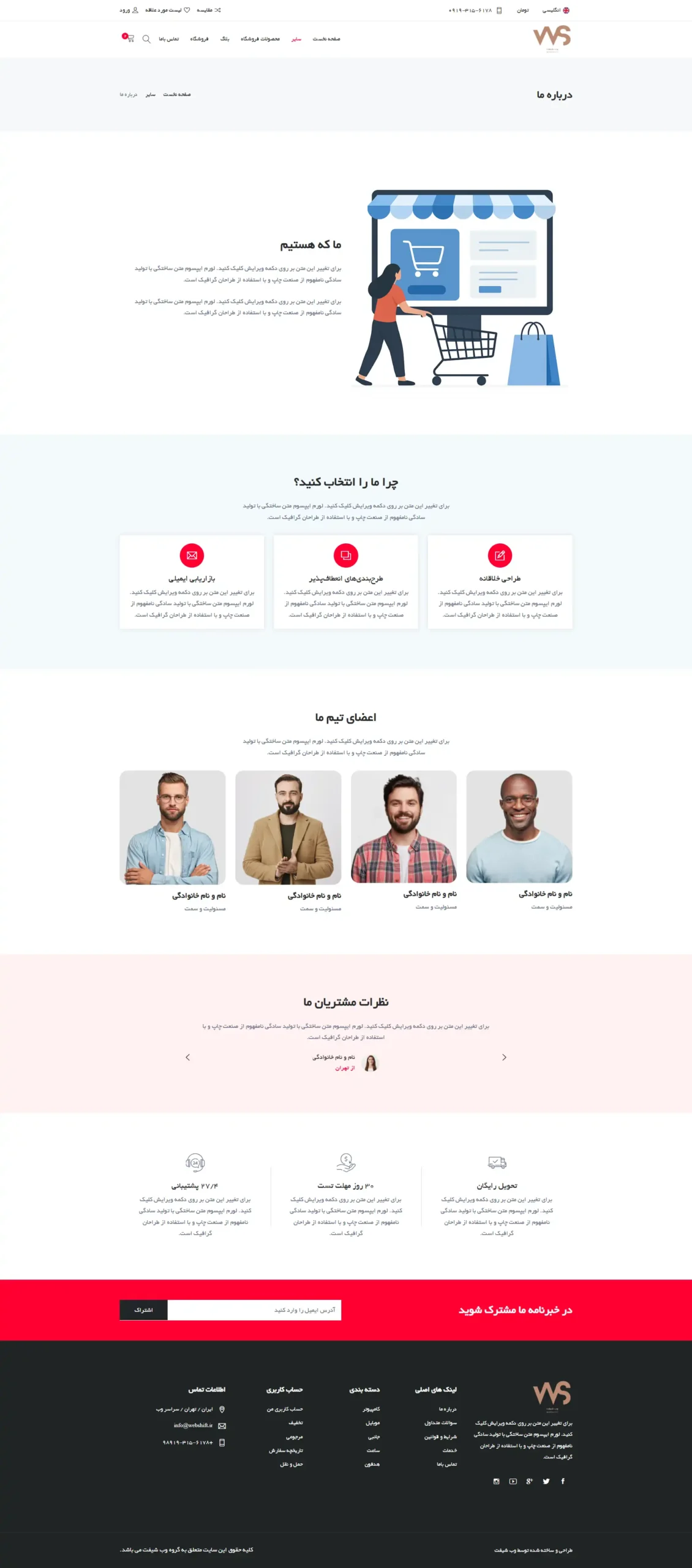 امکاناتی مثل منوی ساده و واکنشگرا، اسلایدر محصولات، تبها (tabs) در صفحه محصولات و طراحی جذاب رابط کاربری.