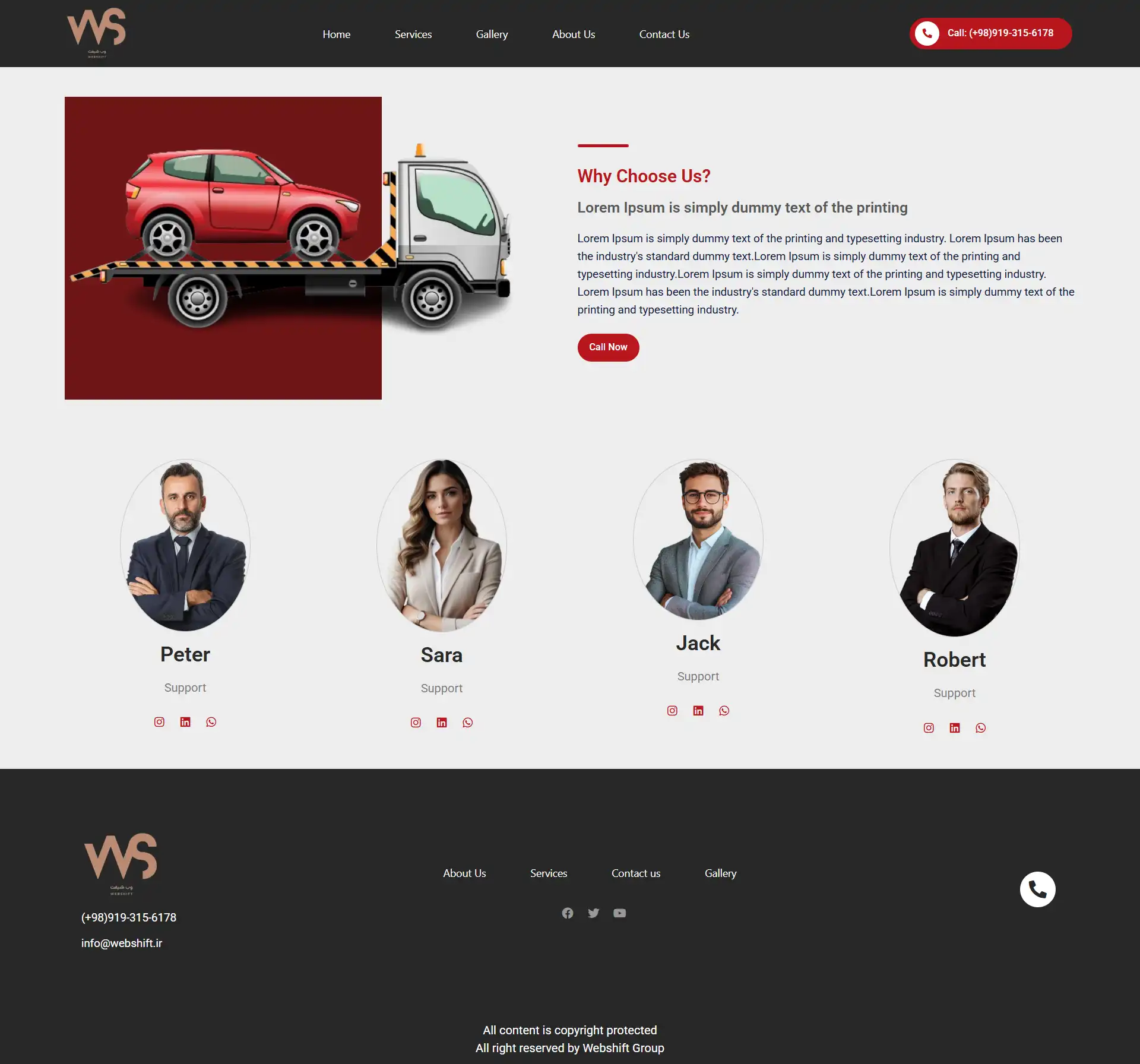 تمام بخشهای سایت مثل «درخواست امداد فوری»، «خدمات یدککشی»، «امداد در محل»، و «شماره تماس اضطراری» بهصورت بهینه و قابلدسترسی طراحی میشوند تا کاربر در چند ثانیه به خدمات شما برسد.